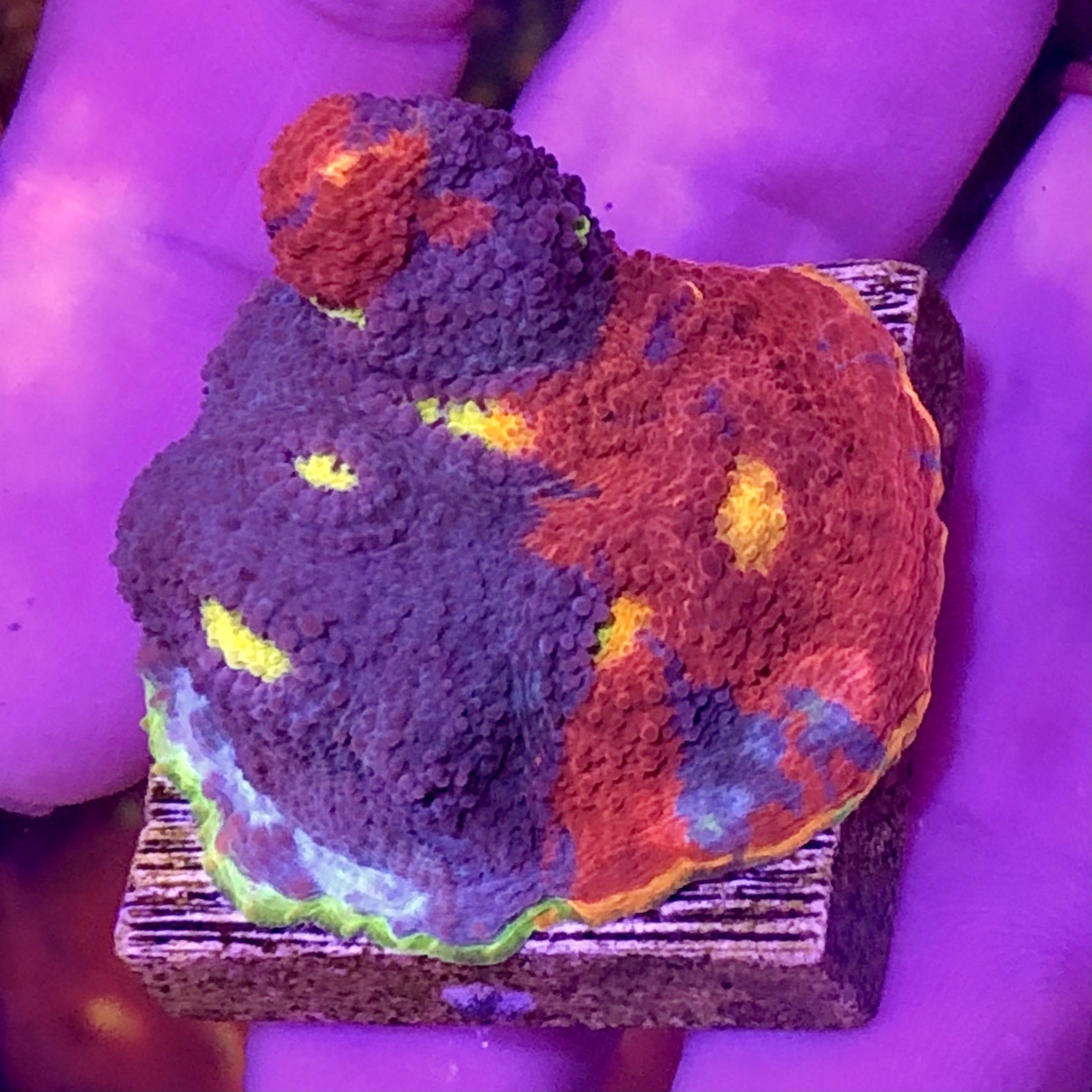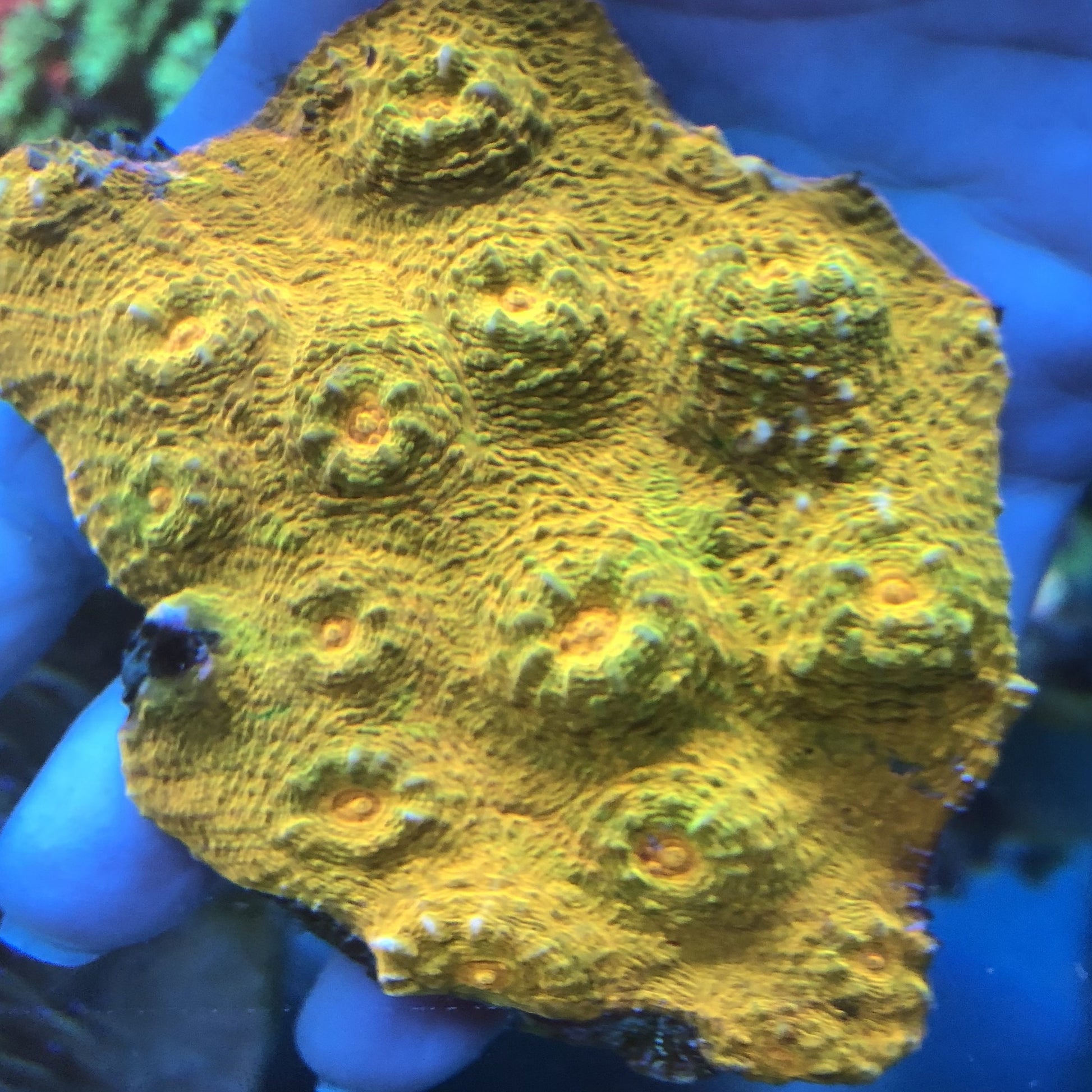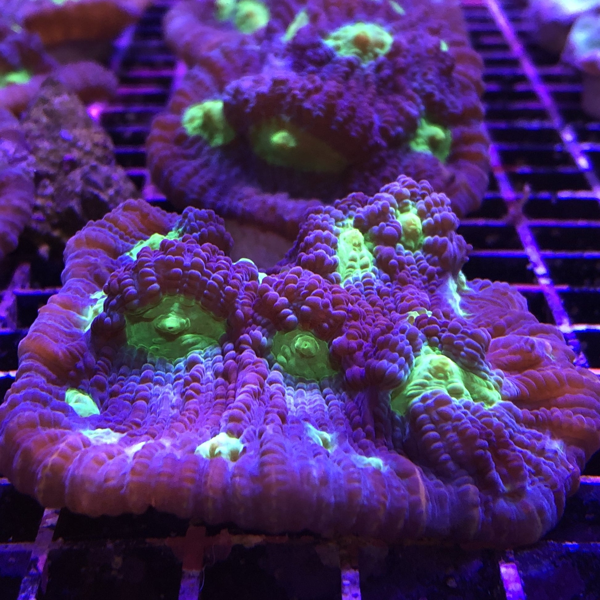 This interesting coral most often takes on a plating shape, able to encrust onto and extend outward from the rockwork. Occasionally it may develop whirls, branches or crinkled shapes. Ultra Australian specimens are always vividly colored and are more rare and impressive than those from other locations.