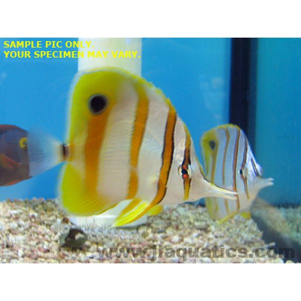 Copperband butterflies collected from Australia are highly sought after because they readily accept normal aquarium foods, such as frozen shrimp. We have even had success feeding Vitalis brand pellets! Their survival rate is extremely high, unlike those from other locations which may stop eating, or never begin in the first place.