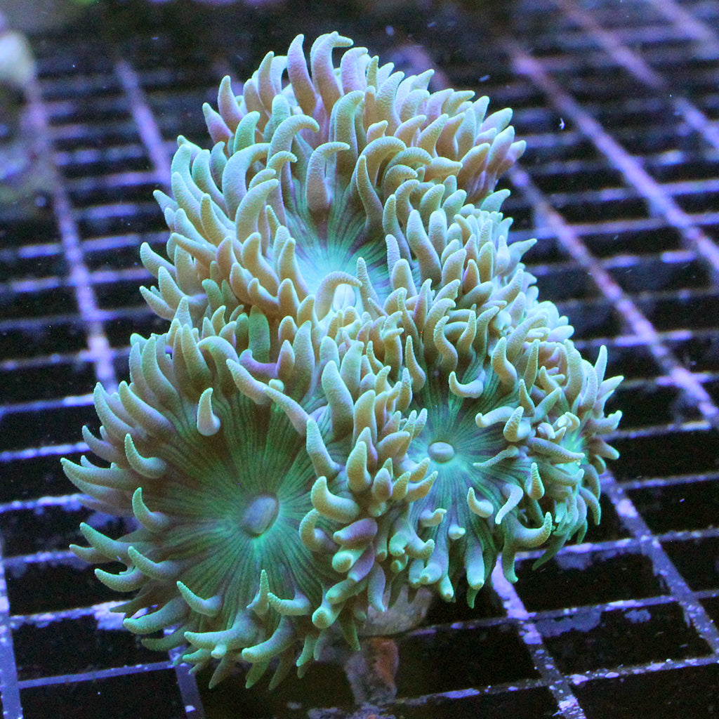 Also known as Whisker, this incredible coral is found only from the waters around Australia and surrounding area. Its plump polyps are surrounded by tentacles which may be short and chubby or long and trailing. It is often shades of delicate pink with contrasting green highlights which may fluorescence brightly under actinic lighting.