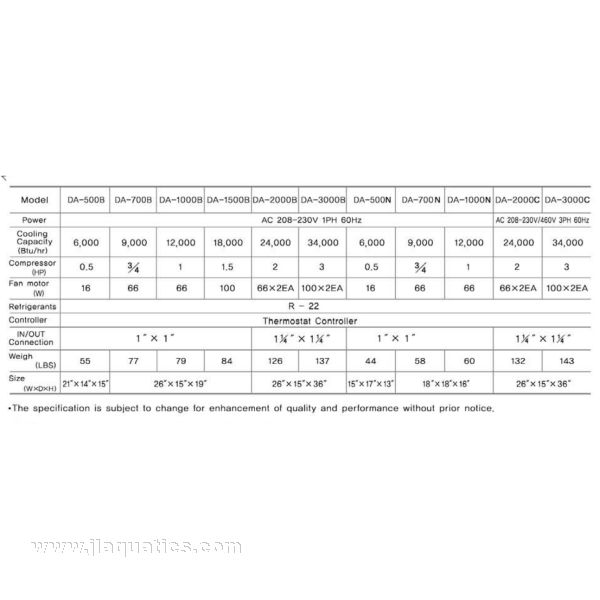 Note: these chillers may be used on tropical aquariums set at 77- F.
