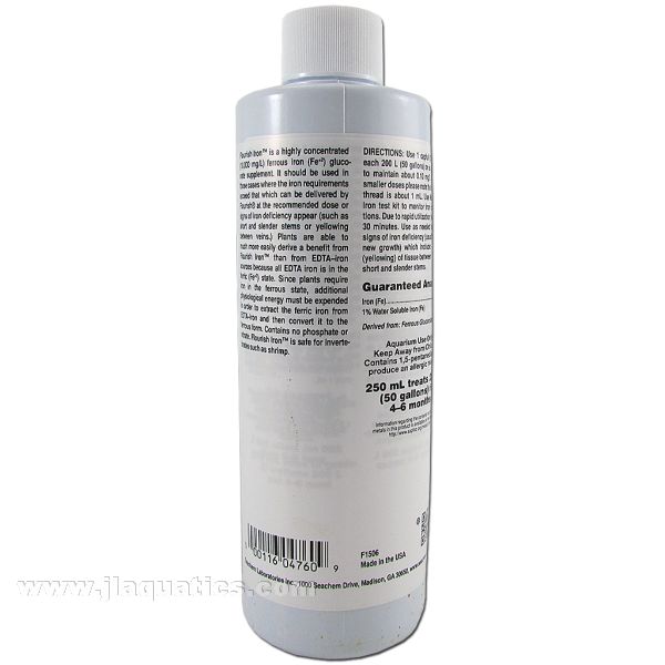 Directions: Use 1 capful (5 mL) for each 200 L (50 gallons*) or as required to maintain about 0.10 mg/L iron. For smaller doses please note that each cap thread is about 1 mL. Use MultiTest: Iron test kit to monitor iron concentrations. Use as needed to combat signs of iron deficiency (usually seen in new growth) which include: chlorosis (yellowing) of tissue between veins and short and slender stems.