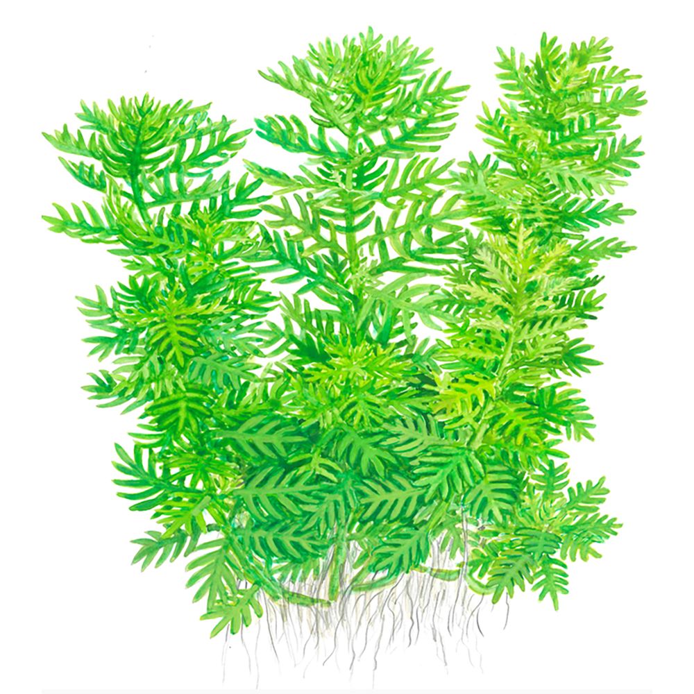 The stem plant Hottonia from Asia and Europe is an unassuming and easy beginner plant. The many curved shoots with fanned and intensely light green leaves quickly create a close group. Each stem becomes 4-6 cm wide and 10-30 cm high. Frequent cutting of the long shoots ensures growth from the bottom of the plant, and maintains the close, bushy form. The plant’s wide form of growth makes it very suitable for the passage between very low and tall plants. The bright green colour creates beautiful contrast and will enhance the shades of surrounding red plants.