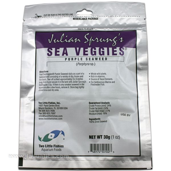 Super nutritious natural Purple Seaweed. Ideal for marine herbivores such as Tangs and Surgeonfish, Moorish Idols, Parrotfish, Angelfish, large Butterflyfish, and herbivorous freshwater fishes, such as Cichlids and Goldfish.